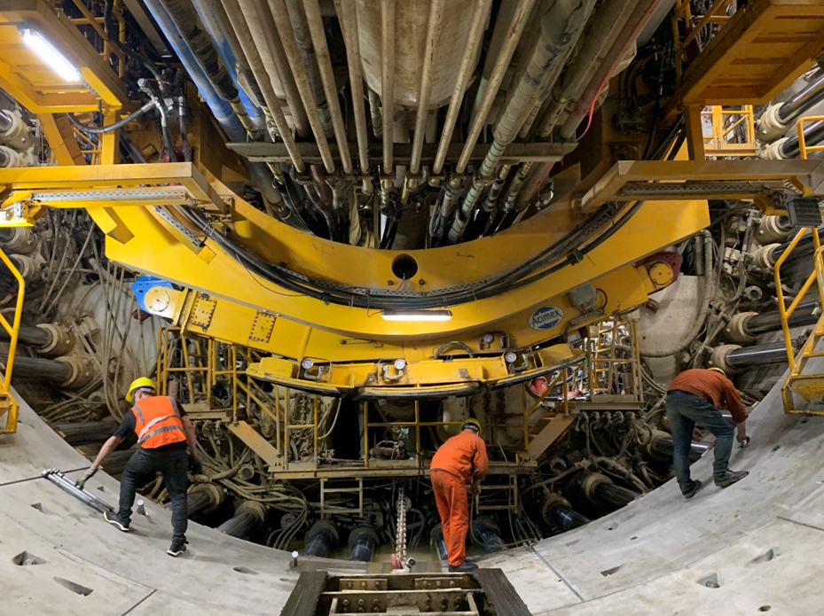 作业人员在紧固管片螺栓